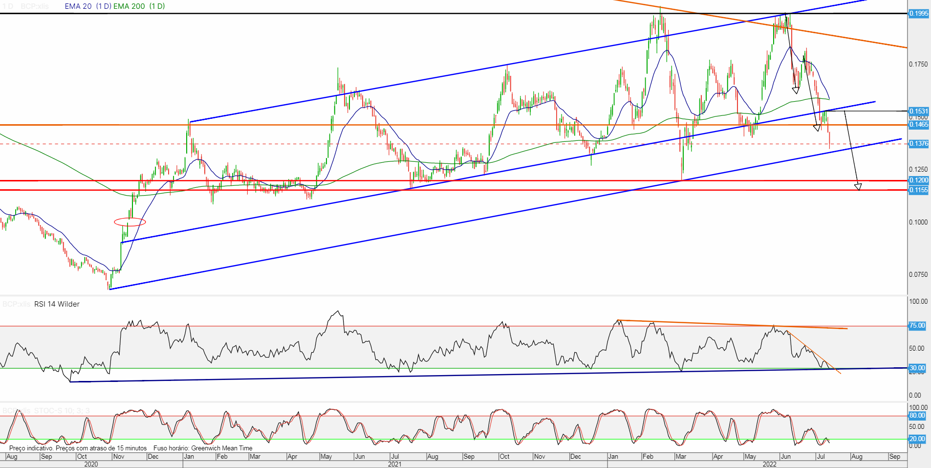 Este ano já ganhei muito dinheiro com o BCP. Quase o mesmo que deixei de ganhar por vender cedo de mais. Estou longo em 100k delas a 0,1515 e amanhã conto reforçar com mais 100k. Tinha HJ ordem de compra de 100k a 0,1350 e o mínimo que fez duas xs foi 0,1351... Não sei se tive sorte se azar, mas fiquei triste por não ter comprado.