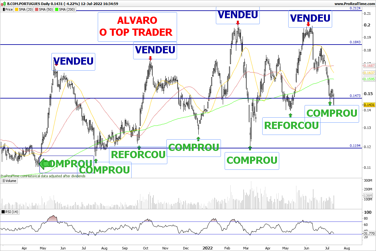 Àlvaro Escreveu:investidor, até eu que tenha fé no Bco quando vi aquilo a acontecer com os bancos espanhóis vendi antes de perguntar, mas depois de perceber retomei, nem faz sentido em Espanha porque o mercado não gosta, mas o facto é que isso acontece porque os bancos vão ganhar muito dinheiro, esse é o ponto. Tal como as energéticas. O movimento ascendente será retomado. assim acredito. Penso que o BCP veio mais perto de 14 por causa da contaminação de Espanha, mas não creio que o Costa se arrisque a estampar a banca.