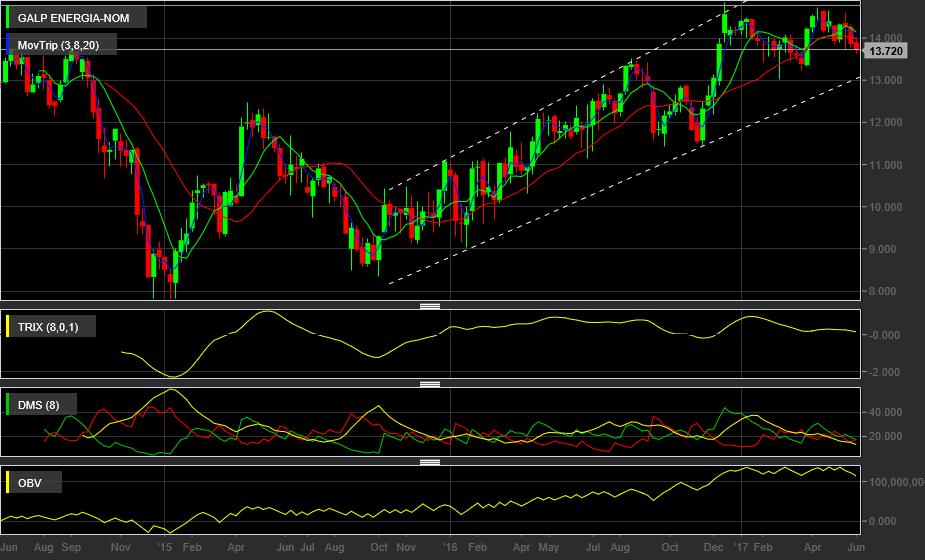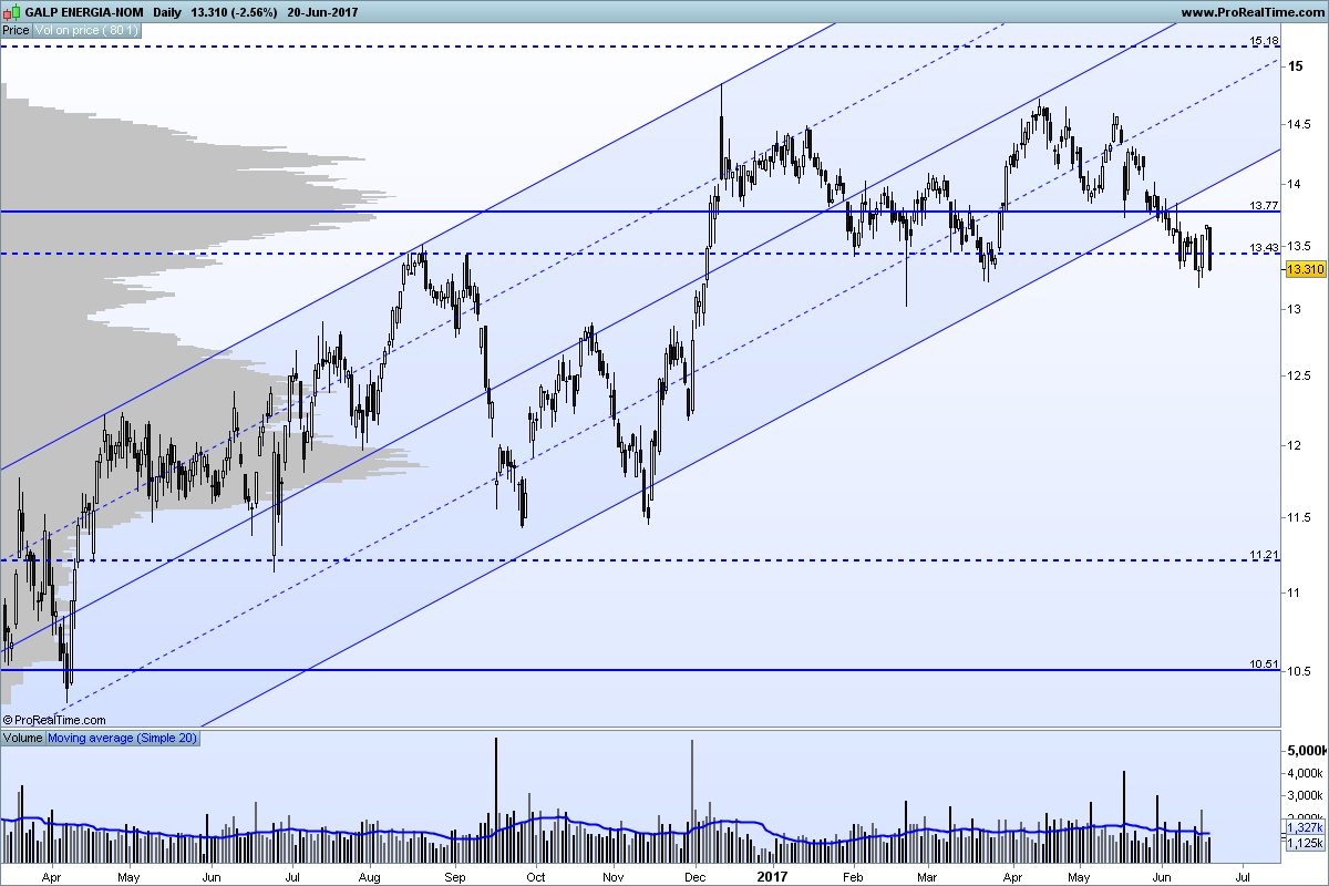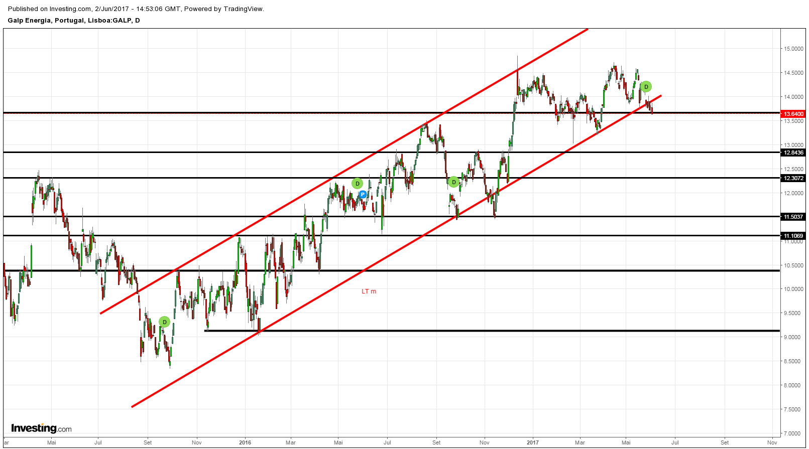 A galp está em lateralização desde dezembro de 2016 depois de forte subida.