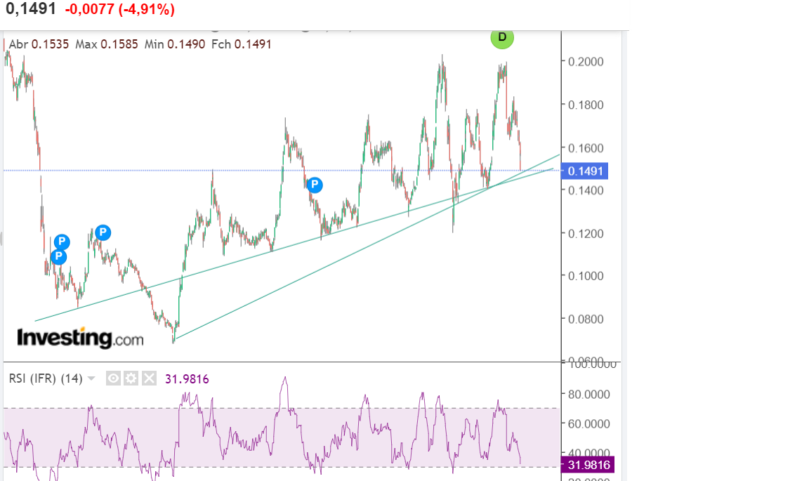 Se os 0,14 não aguentarem complica. Para entradas com mais confiança só passando os 0,15 com clareza
