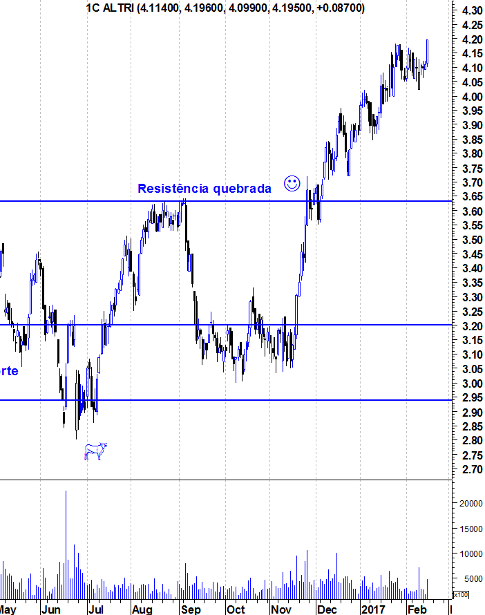 Continua a mostrar força, quebrando resistências e subindo após cada retracção. Mais um dia no "Bull Market" da Altri.