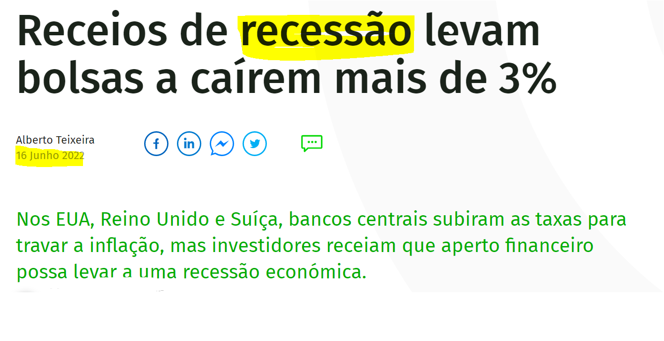 O problema da Europa não é a inflação. É a recessão. E nos EUA já há vozes a dizer o mesmo.