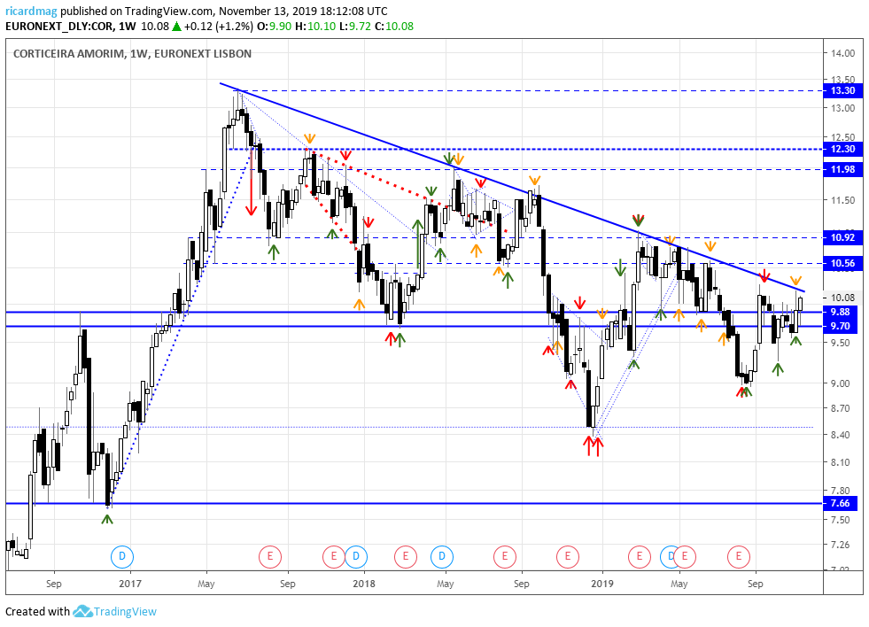 o claro suporte dos 9 euros continua a ser um forte suporte para a Corticeira