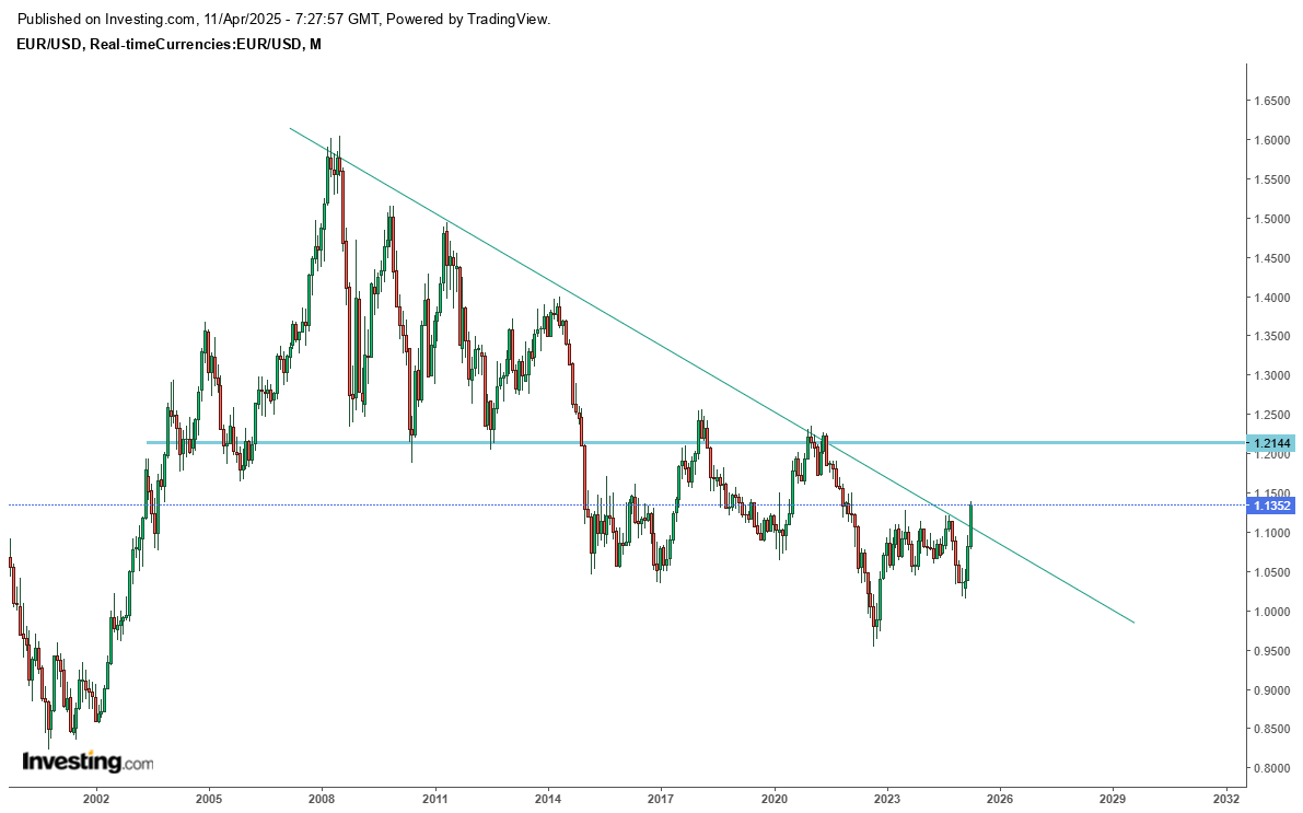 A resistência Eur/Usd parece que foi quebrada facilmente. Próximo- niveis de 2021 (1Eur=1.20Usd) ?