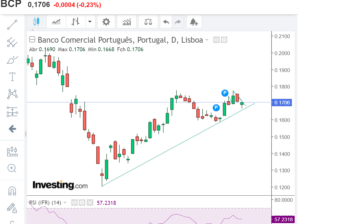 Apesar da decisão desfavorável do BCE aguentou-se. Será a posição curta a fazer umas compras para vender a 17.5? Mantenho a mesma ideia: vai a 17.5 e recua com força para sul.
