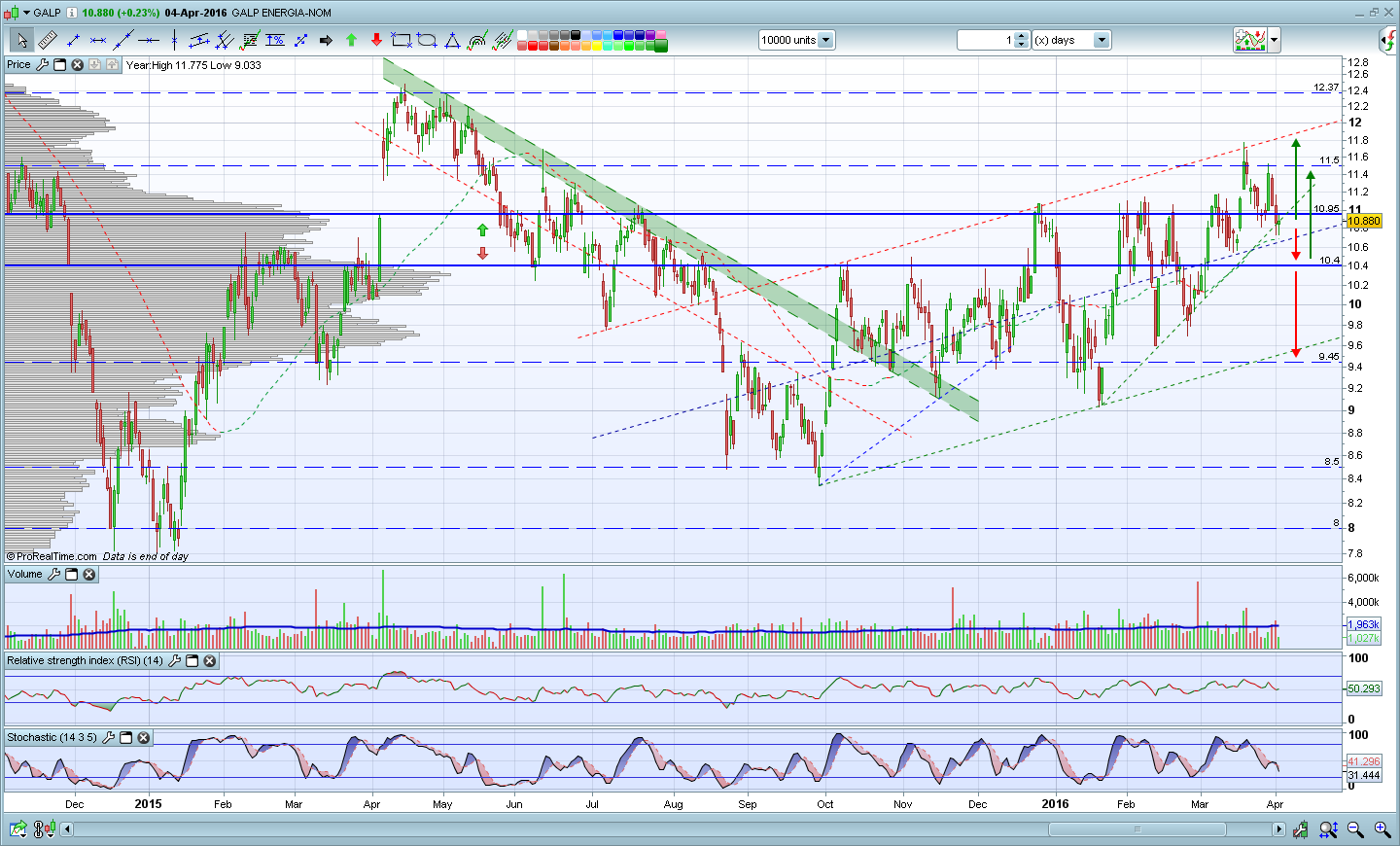 Todas as análises técnicas são bonitas, coisa e tal, mas quem reina no mercado são os ursos, desde há uns dias... Também entrei a 10.85 e acima de 11. Neste momento, já perco umas massas valentes.