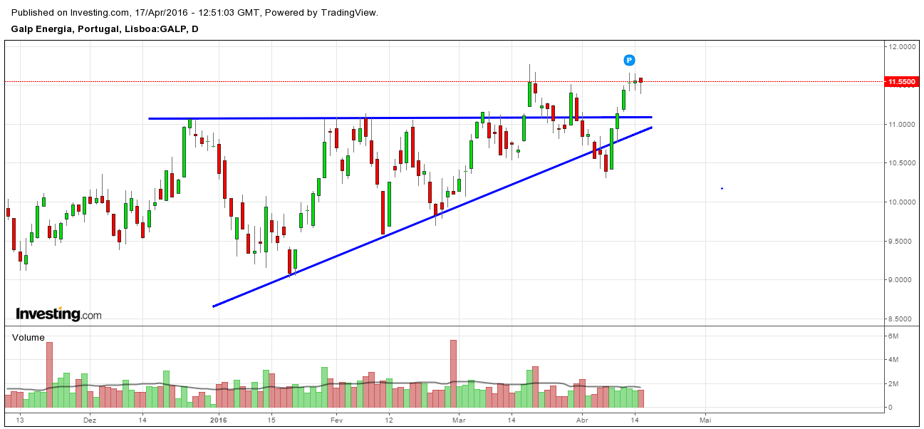 Quebra de resistência e retoma. Galp muito positiva para futuro.