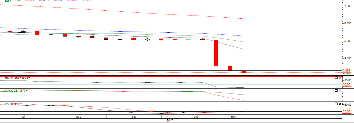 As velas semanais e diárias foram muito feias e de continuidade , fechando a semana praticamente em minimos