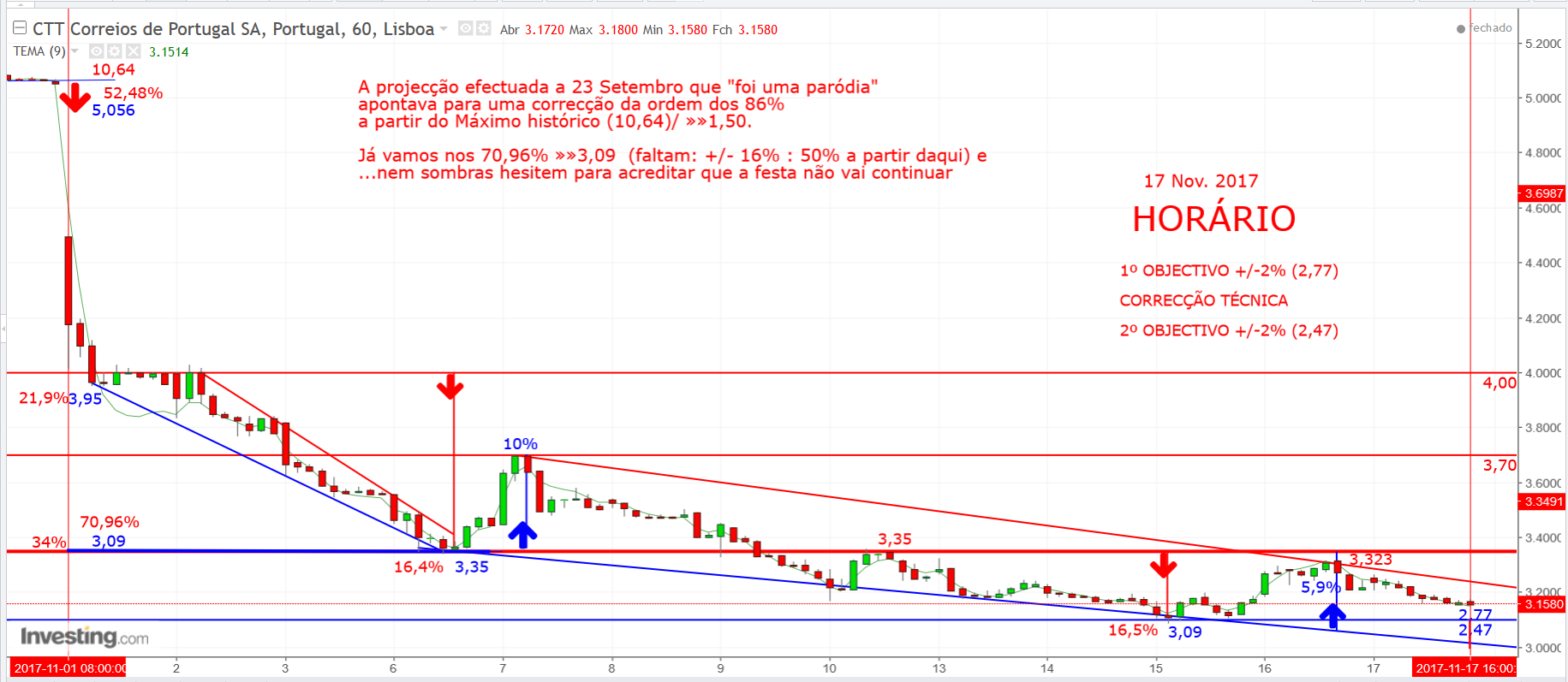 A minha projecção aponta para : 1,51 (Um €uro e Cinquenta e Um Cêntimos) e não 2,50 e foi nestes valores que coloquei a minha primeira ordem.