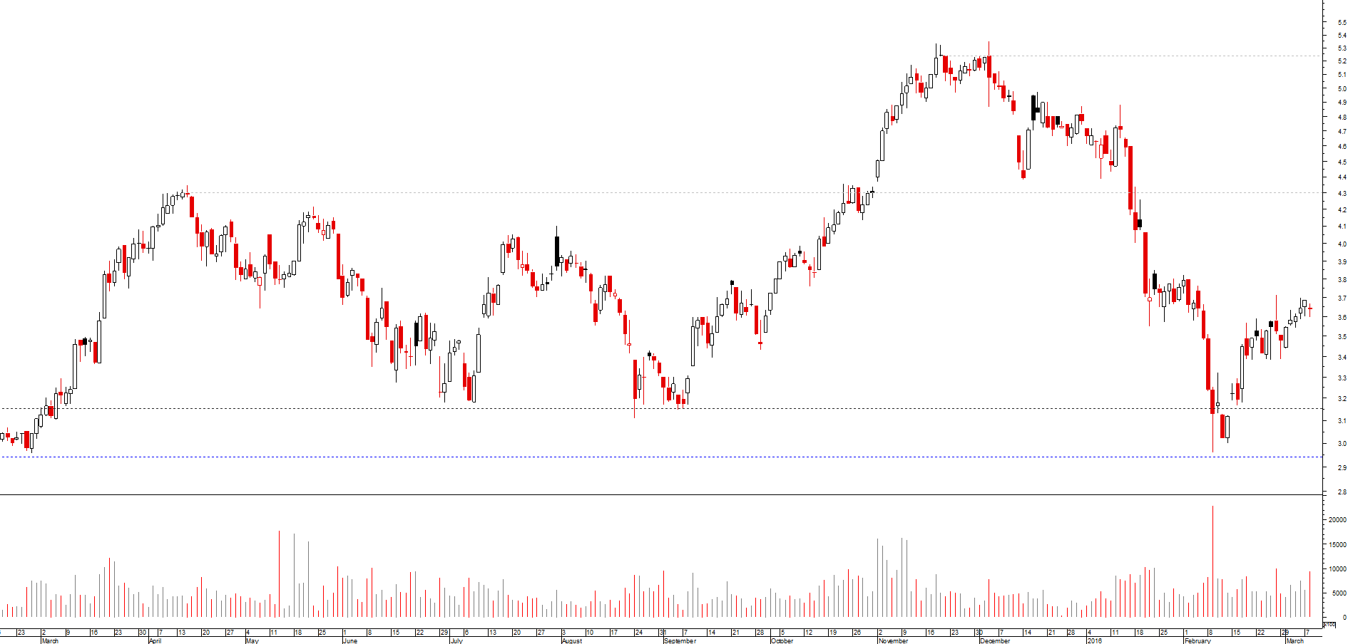 Isto para mim tem jeitos é de estar a consolidar junto á resistência para rebentar para cima depois,cuja projecção pode levar a 4,30. Não esquecer que temos um gap na casa dos 3,10€,pelo que não acredito em novos máximos,mas sim no inverso,vamos acompanhando...
