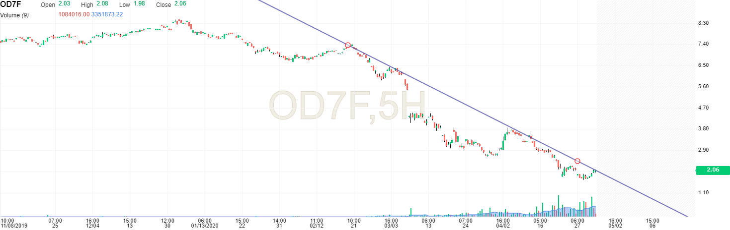 O crude até pode ir novamente aos $25, não é isso que eu ponho em questão. A minha estratégia de investimento passa por enquanto o supply for superior ao demando, as odds estão para que o preço baixe. E se associares a desaceleração macro económica, aumenta as odds para o preço do crude baixar. Pelo gráfico abaixo até podes ver que algumas das minhas estratégias ativaram sinais de long no dia 20/04/2020. Contudo do ponto de vista fundamental para mim é um trade que não me quero expor pois acho que consigo ir buscar o meu alfa em outro lugar.