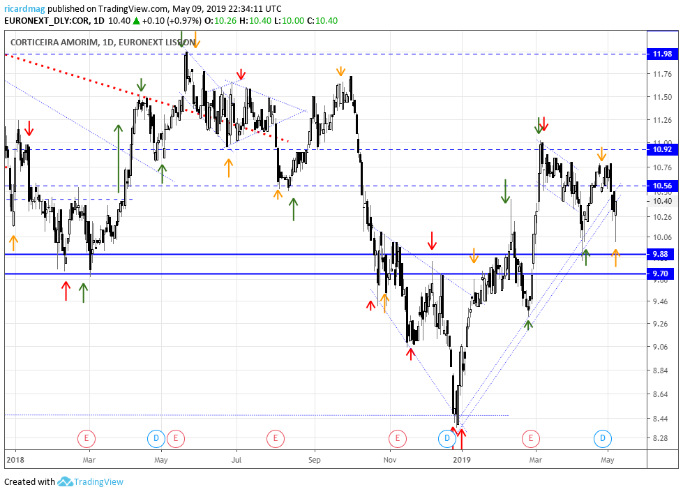 Não sabemos se está em formatação um topo, mas se for, poderemos traçar uma Ltd no médio/longo prazo. O cenário ideal seria retrair ou consolidar e quebrar em alta a zona dos 11€.