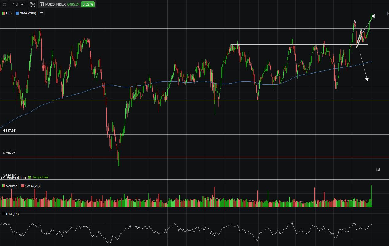 Exceptuando uma pequena possivel divergencia no RSI, tudo o resto a indicar que o bull market conseguiu ser retomado no PSI.