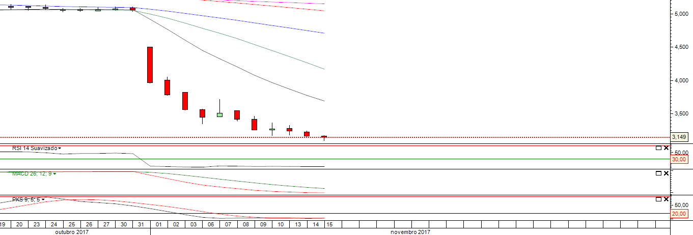 Mas também é certo que posteriormente não para de fazer novos mínimos o que é péssimo na tendência do gráfico e para quem está longo.