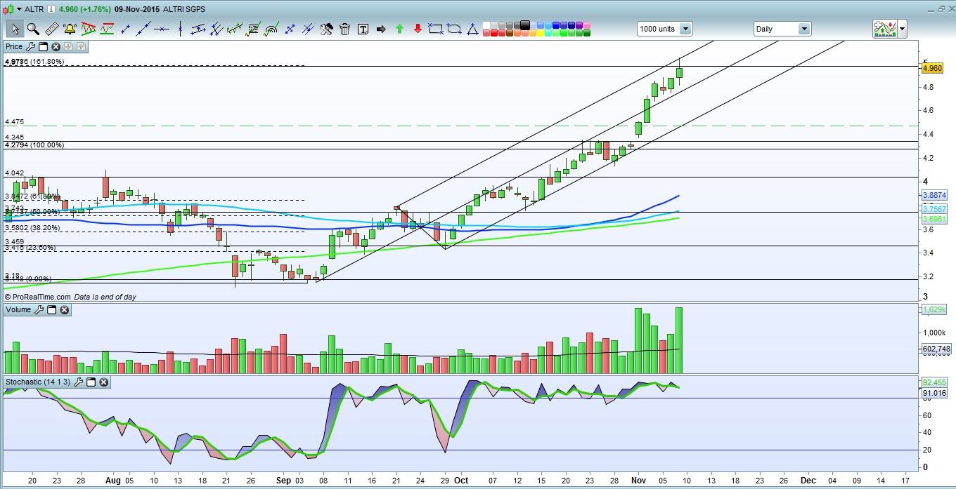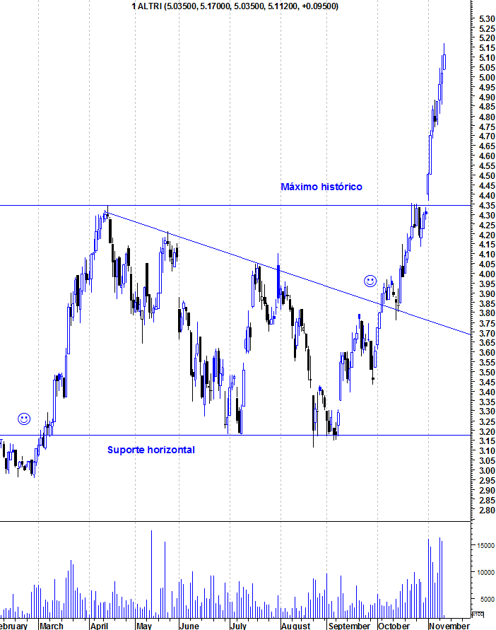 1ª Questão - Tendo em conta a cotação actual da altri onde devo colocar o preço stop? Ouvi dizer que devia ser abaixo de uma resistência, mas quão abaixo? E onde se encontra a resistência neste momento?