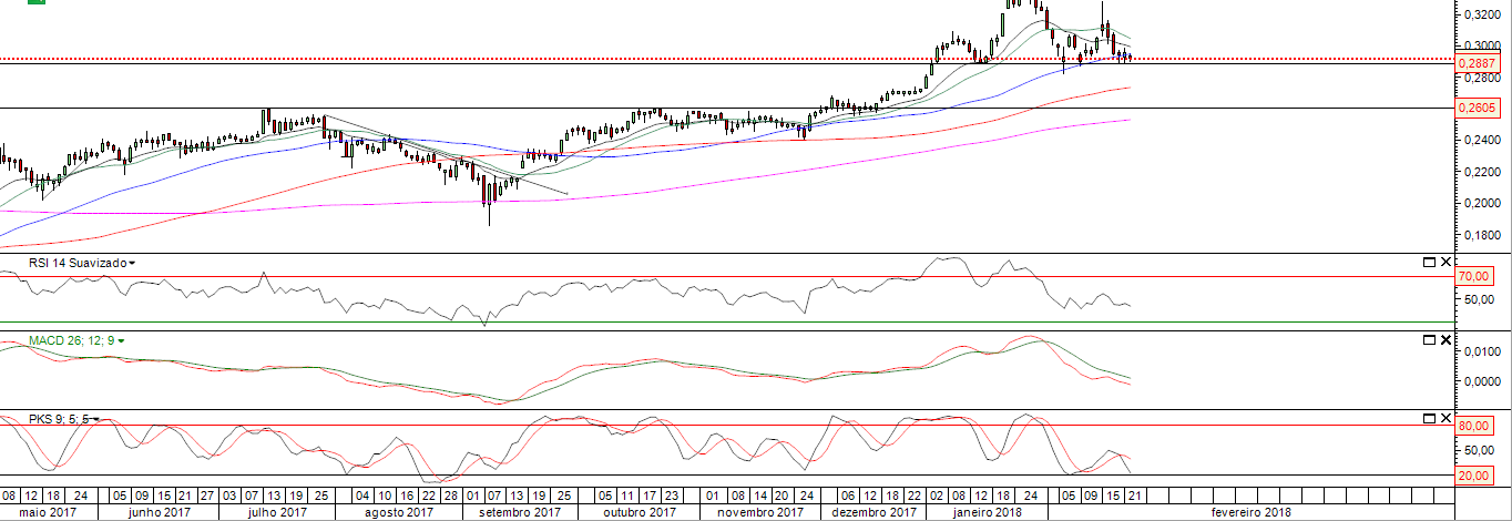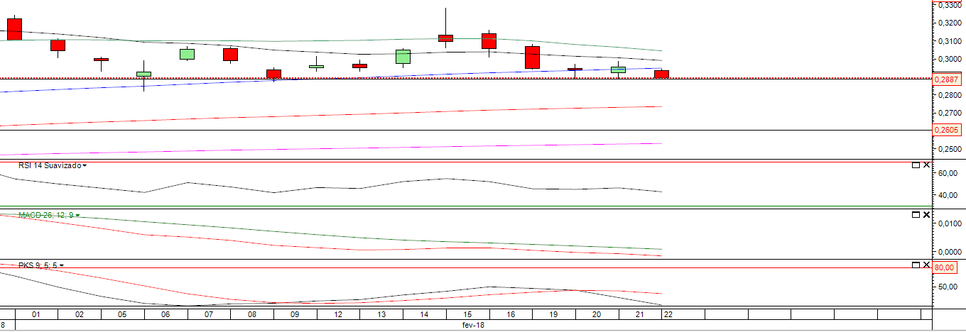 Quaebrando o suporte dos 0.288 com força e volume deve gerar fortíssimo volume de vendas de stops e vendas com ganhos