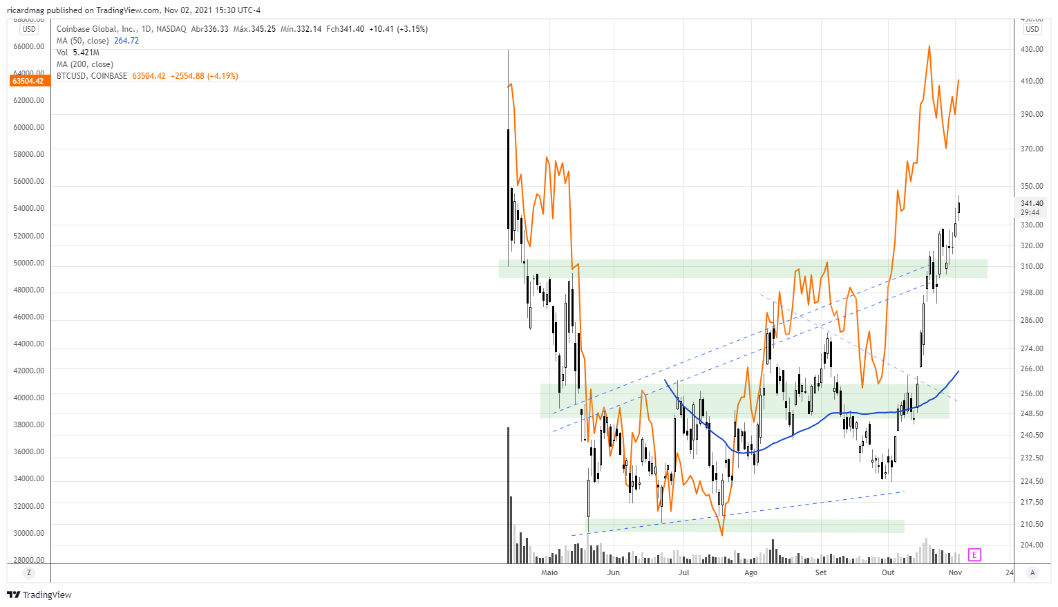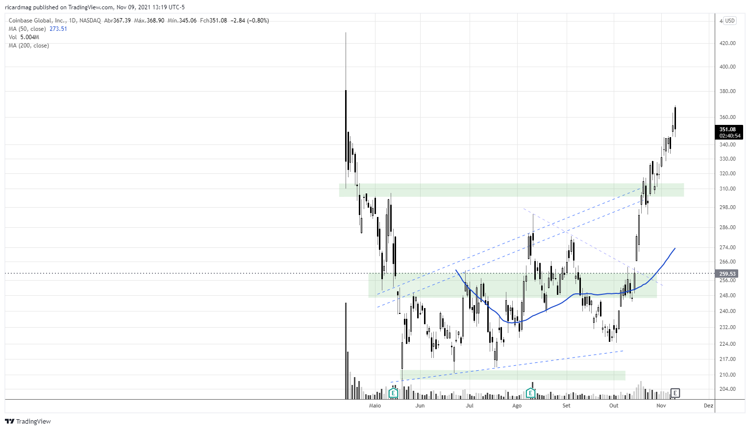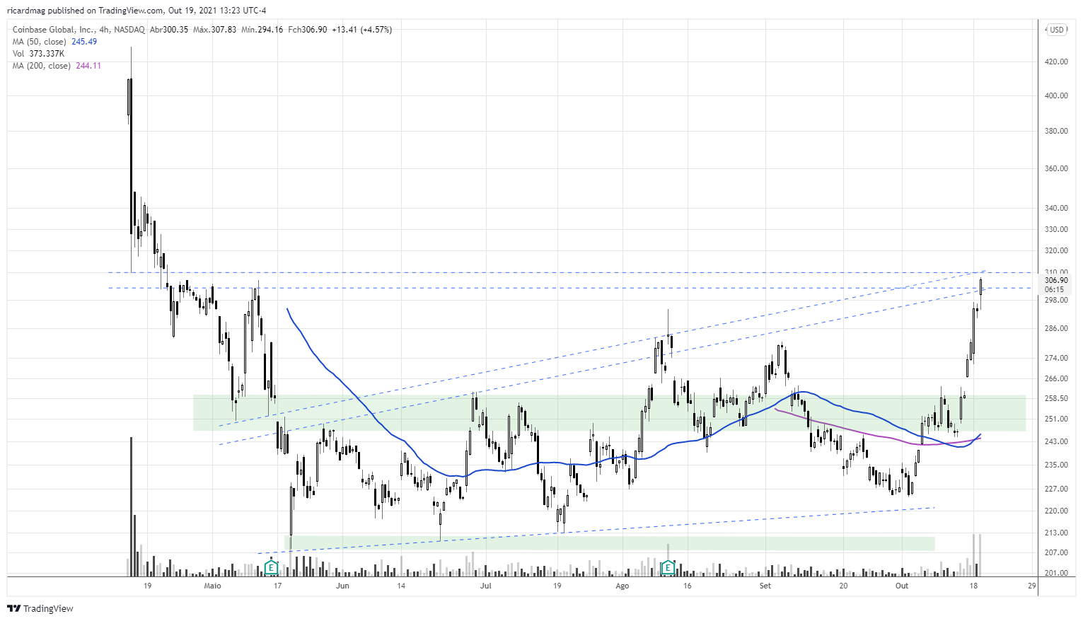 A Coinbase tem um bom suporte ali próxino de 220, mas todo o cuidado é pouco. As criptomoedas são o que são:
