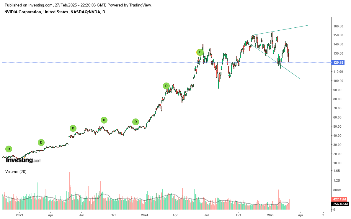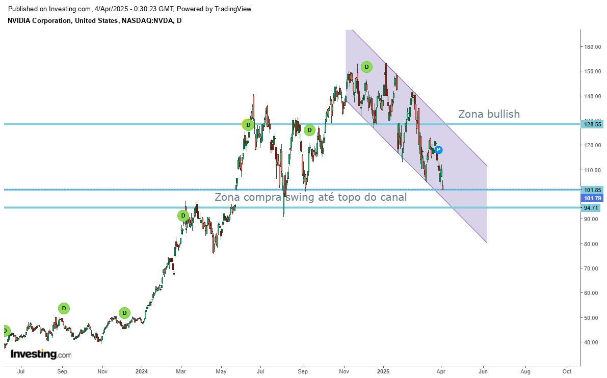 Com a suspensão das tarifas, NVIDIA recuperou, já está de volta a valores de fevereiro. Se o governo mantiver a calma nas tarifas, vamos aos 150? 175 para fim de ano, o CAPEX que as big tech andam a gastar em aí é o melhor indicador.