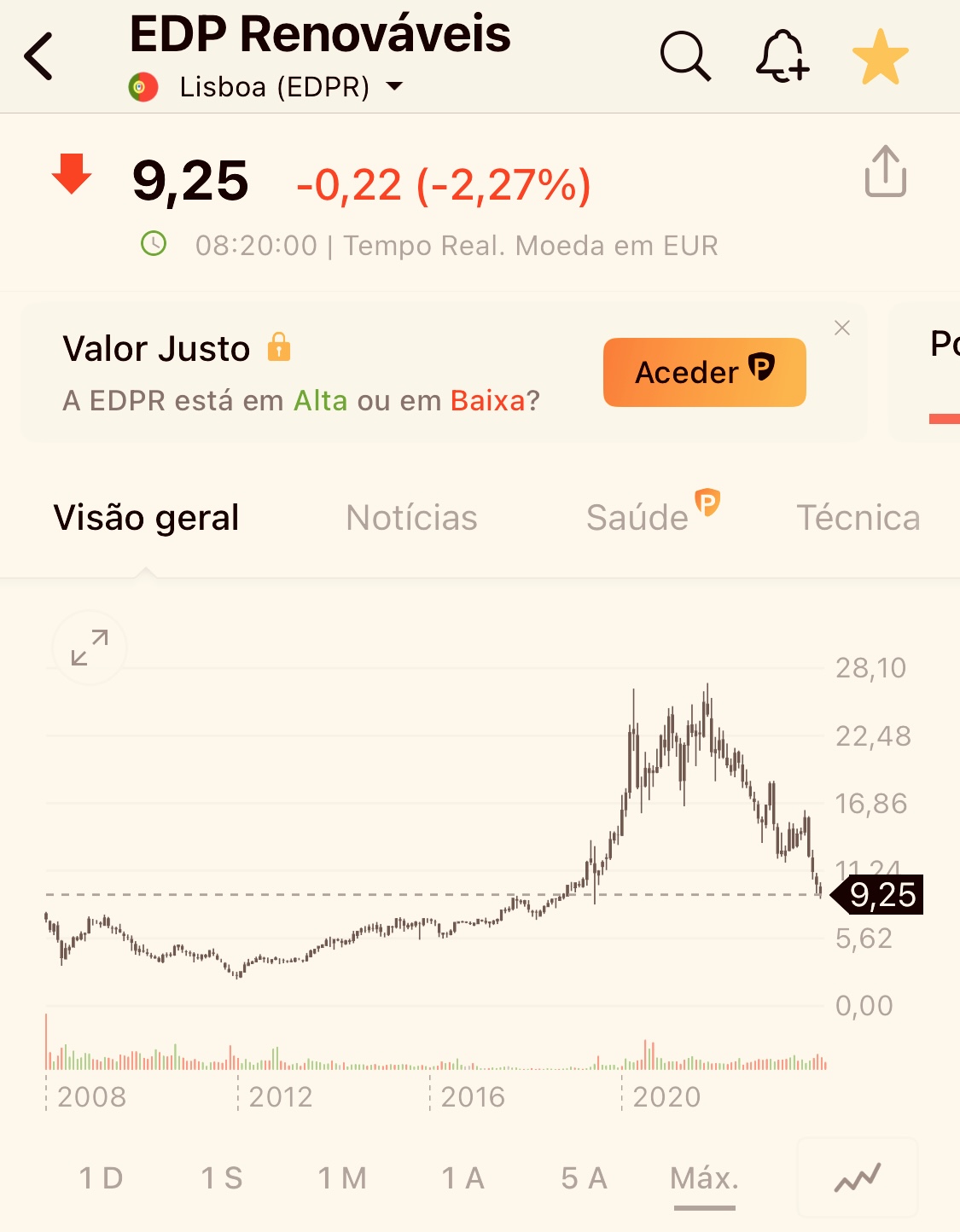 quando chegar a € 7, logo podes falar em futuro de curto prazo