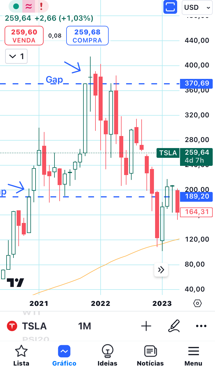 Sim, como disse há gaps maiores e menores. Os 2 gaps na tsla mensais são os maiores que já teve, se não me engano mais de 3%.