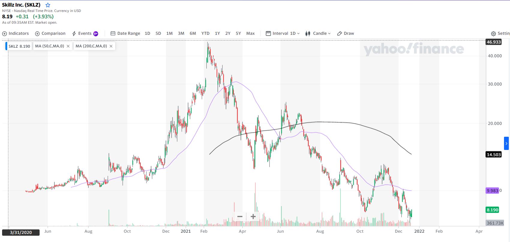 Durante 2020 evoluiu em crescendo desde os mínimos de Abril, por volta dos 2$, até um topo em que lateralizou entre os 8 $e 10$), no período antes do verão. Seguiu-se uma correcção com perda de 50% preço, tendo este aparentemente apresentado chão em torno dos 4$.