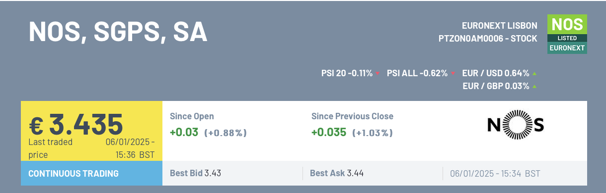 A recomendação do CaixaBI é "compra" das acções da NOS com preço-alvo de €4,30 por acção.