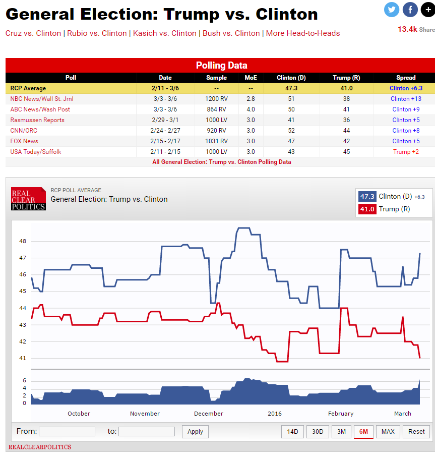 Nesta altura, o Trump lidera nos republicanos, mas é um Godzzila cor de laranja para os moderados que decidem as eleições na meia dúzia de Estados que em que a vitória não está garantida à partida para um dos lados.