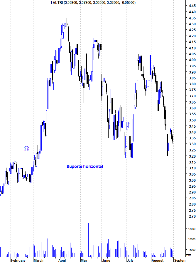 O padrão de velas na Altri é bastante feio