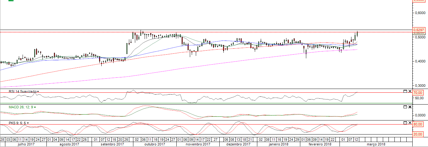 Só considero a resistência ultrapassada do ponto de vista técnico quando fechar acima dos 0.53