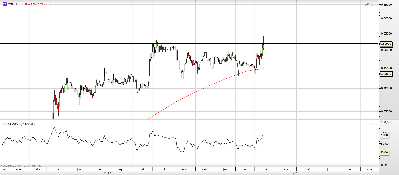 Discordo uma vez que a resistência fundamental estava nos 0.517 e o valor de fecho superou a mesma.
