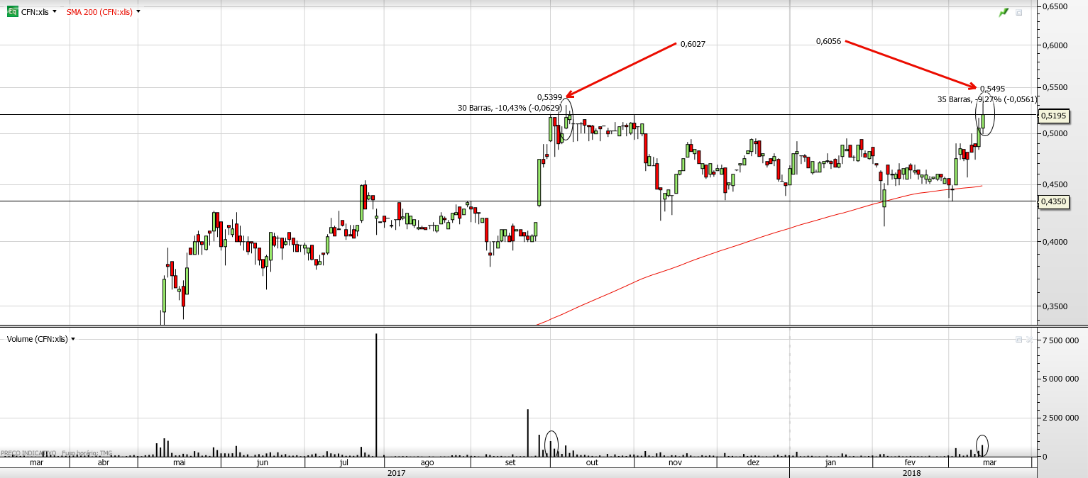 Se ela fechar um dia destes nos 0.54 e passado uns dias vier novamente aos 0.50, como é? A doutrina diz que foi um falso breakout e sai-se do papel?