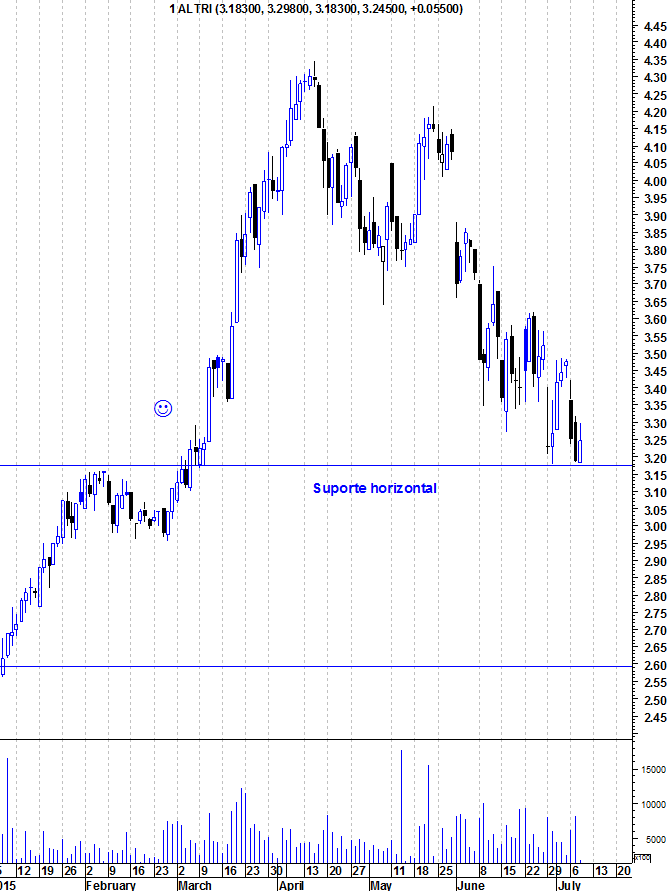 alguem me pode explicar porque que na plataforma da gobulling a altri quebrou o suporte referente a maximos de 2007 e no do Ulisses esses mesmos maximos encontram se ainda abaixoda cotacao, nomeadamente a 3,15 e 3,25? por quais me devo reger??!