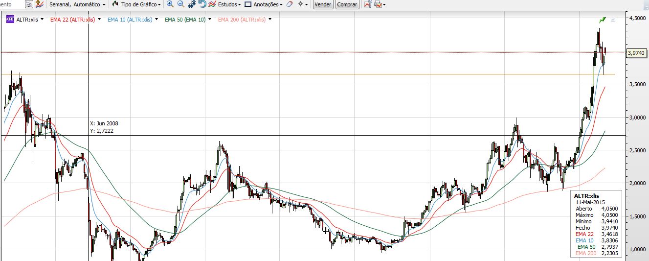 ALTR, PTI e SEM no top das valorizações do dia de hoje.....