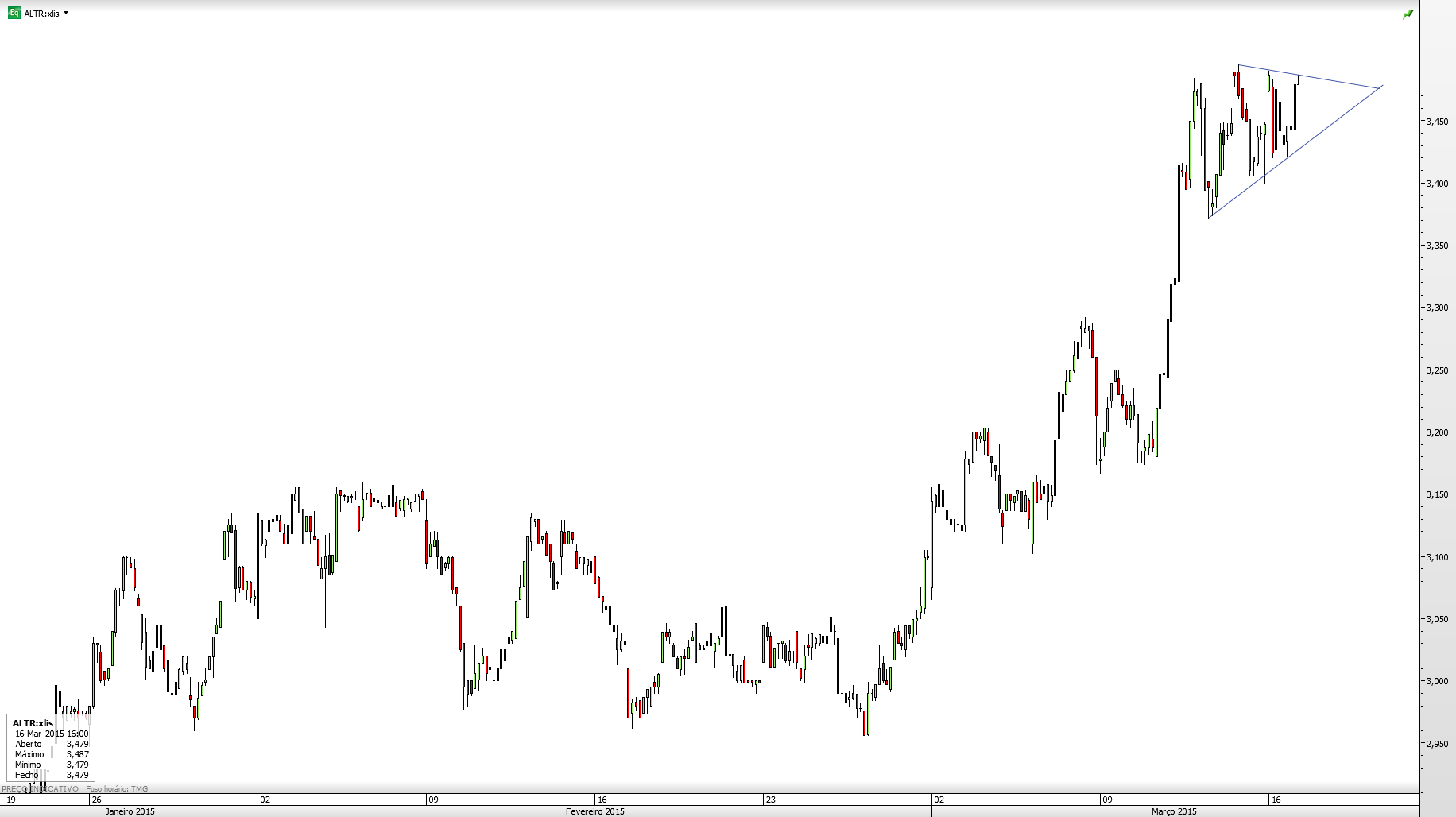 Eu até diria (não sei se a ver coisas onde não há) que estamos a caminho da projecção de um padrão de bandeira (mais ou menos 3.70€).