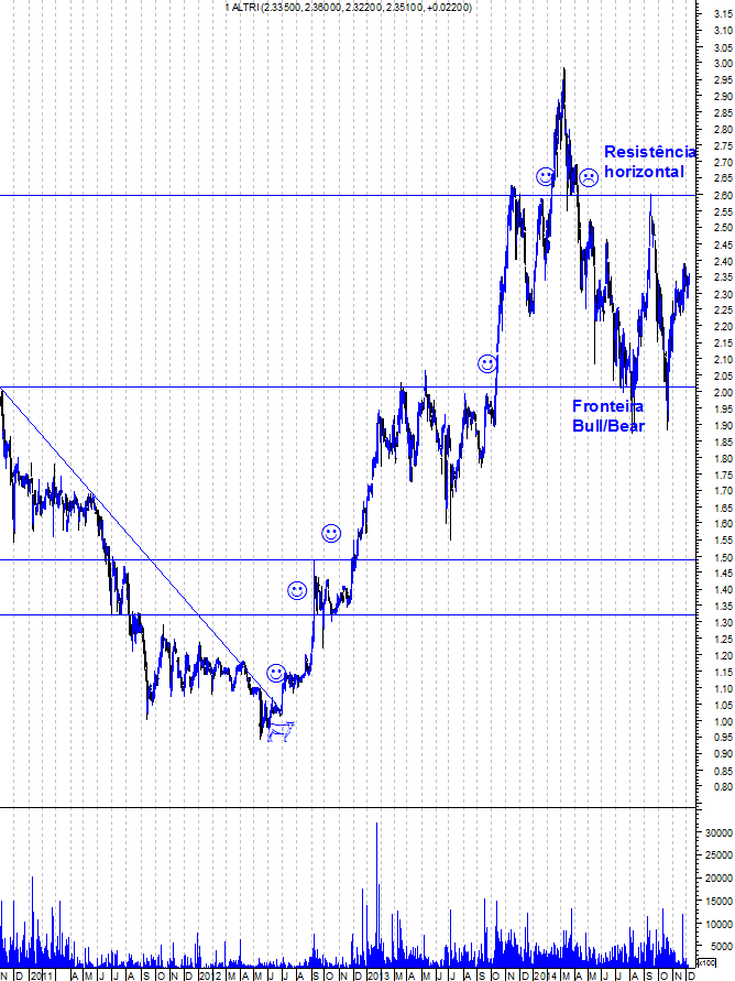 Apramg Escreveu:A altri está perto da forte resistência dos 2,60-2,62. Como em bear market devemos estar atentos às resistências e não aos suportes (...).