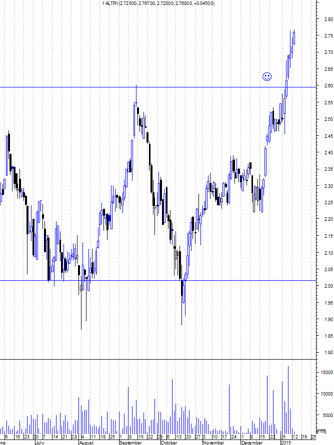 mas isso só seria válido se a altri estivesse em bear market, o que não é o caso; o que tens de vigiar é a zona dos 2 euros - caso seja quebrada aí sim temos inversão de tendência