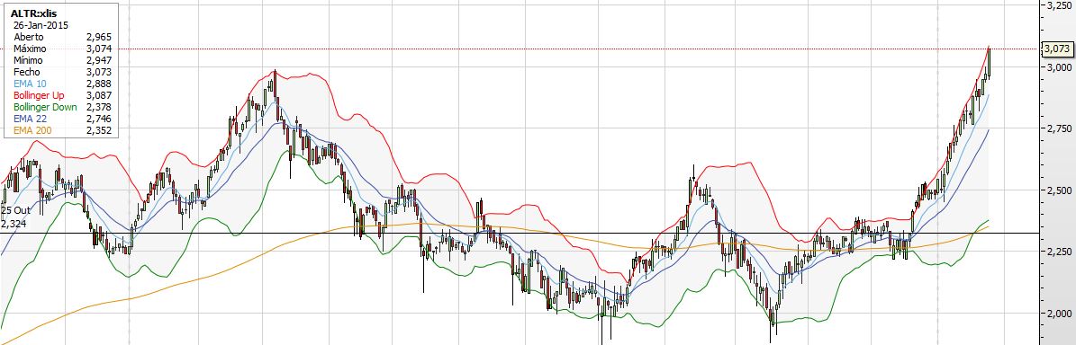 A Altri continua imparável, quebrando sem pestanejar a resistência na zona dos 2,6. Dado o ritmo acelerado das subidas, é provável que uma correcção de curto prazo esteja à porta, mas em todos os horizontes temporais a acção está sob domínio dos touros.