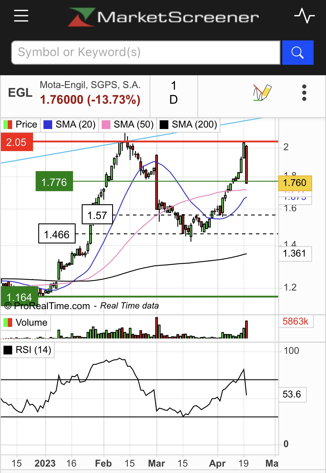 Caro Zé Manuel, na minha opinião a ME neste momento está imprevisível, nao acredito em short selling contudo acredito que valerá mais do que cota neste momento, os chinocas pagaram à família Mota 3,08€ por acção. Quando chegou da primeira vez ao 2.115€, nunca pensei de a ver quebrar o 1.50€ em tão pouco tempo,mas mesma forma que ela foi novamente dos 1.50€ ao 2.04€... Como não vou pela análise fundamental nem pela análise técnica, neste momento mantinha-me atento à quebra em baixa dos 1.75€ e dos 1.50€, uma vez que são alvos possíveis. Contudo, mantinha-me atento a um movimento que quebrasse os 1.90€, pois seria um sinal de força. Na minha perspectiva e guio-me sobretudo pela tendência entre o range dos 1.75€-1.90€, é terra de ninguém, BN.