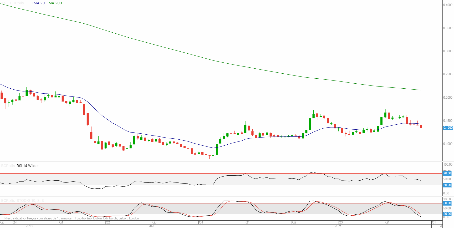 Eu vendi as minhas ações do BCP a 0,1413 euro, na segunda-feira, pois olhando para o que a cotação do BCP vinha fazendo entendi, e bem, que a cotação iria continuar a descer. Assim, não deixei que uma mais valia de cerca de 2500 euros se dissipasse.