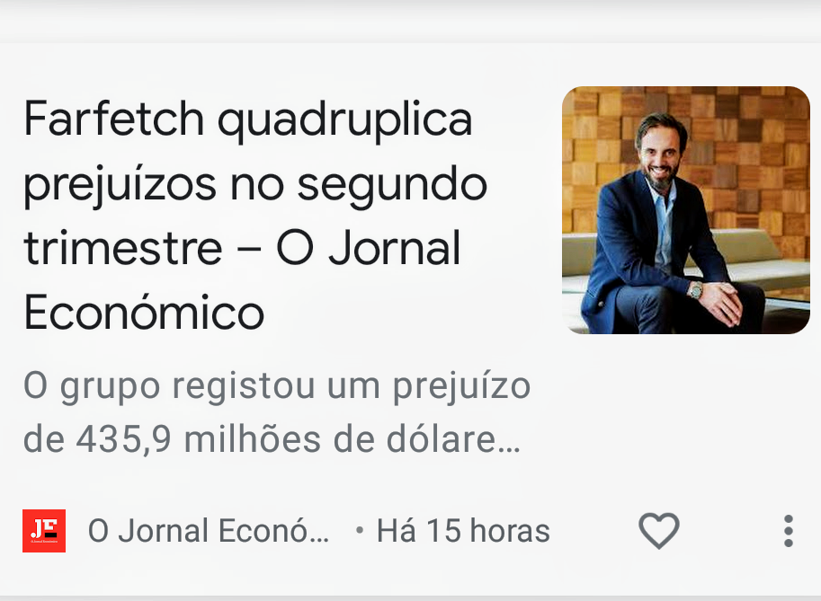 Tem sido esta a estratégia da gestão da Farfetch: crescer a todo o custo sem olhar a custos. Há quem não entenda esta estratégia e esteja contra. Esses merecem todo o nosso respeito.