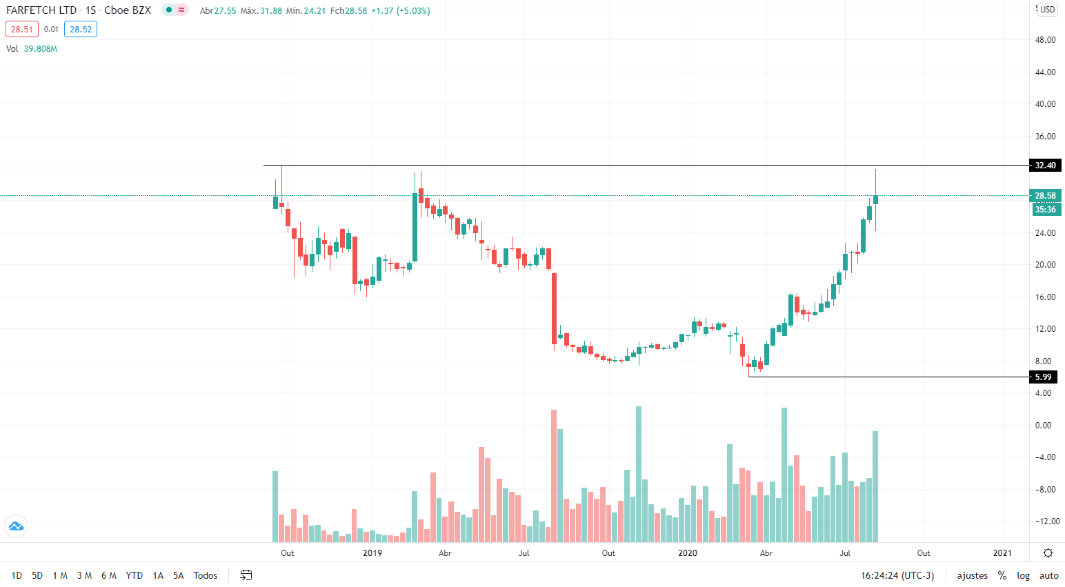 Entretanto a FARFETCH já esteve a subir mais de 20%. Hoje.