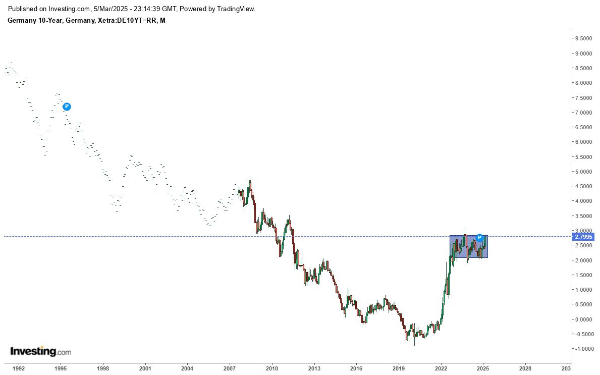 Mas porque sobe tanto o EUR/USD ?? Viram a brutal queda das OT da zona EUR após o anúncio do pacote Economia de Guerra?