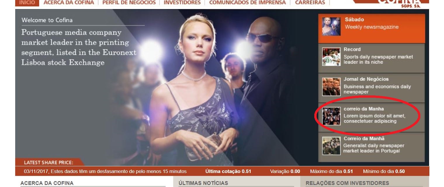 Já nem disfarçam (do sítio web da Cofina):