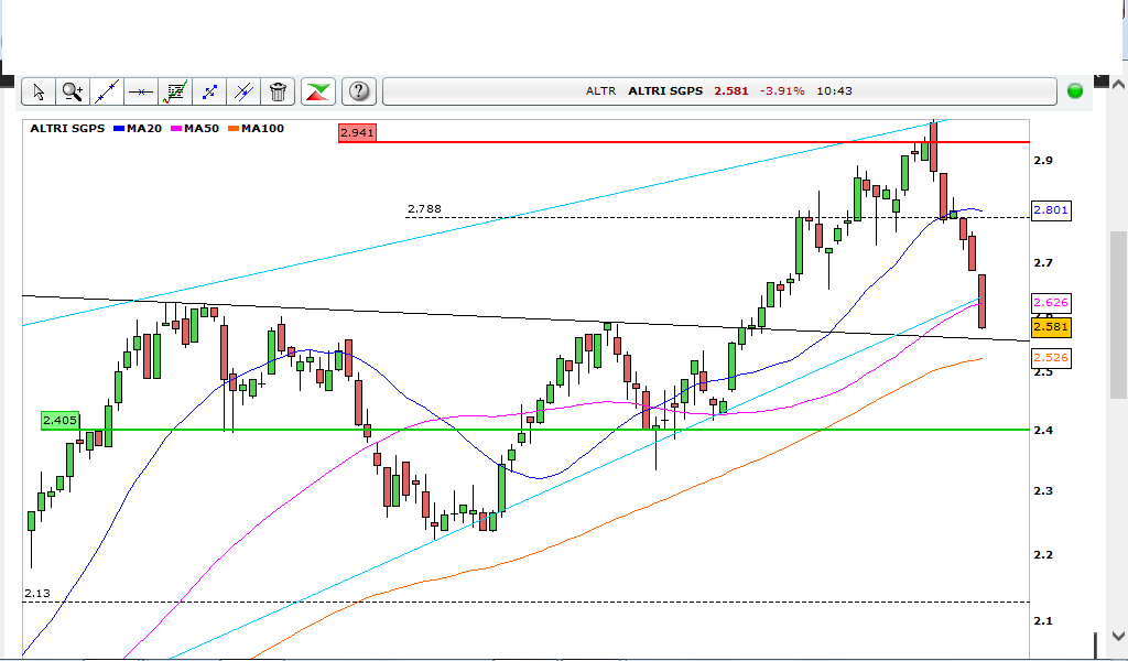 Penso que em épocas de grande turbulência internacional, como aquela que atualmente atravessamos, nos devemos abstrair um pouco da análise técnica. Quero com isto dizer que, por exemplo, no caso da específico da Altri, a quebra do suporte dos 2,61, a verificar-se no final da sessão, poderá ter sido um pouco forçada por essa turbulência...
