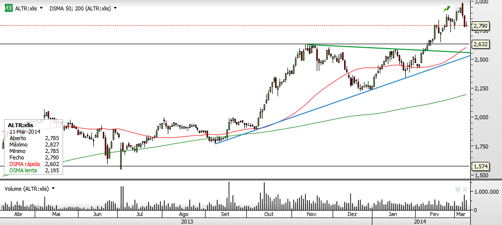 Cuidado, não será essa vela uma shooting star disfarçada? Eu continuo a achar que ela vai corrigir para valores próximos da projeção da LTA de longo prazo ali nos 2,6~2,63, o que será um belo ponto de entrada...