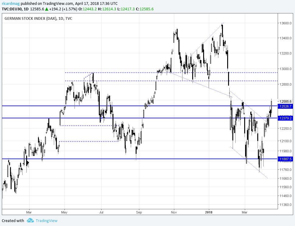 Aqui no DAX depois da acumulaçao diária na zona dos 12k,agora tambem no semanal,é pegar no terço e ter fé