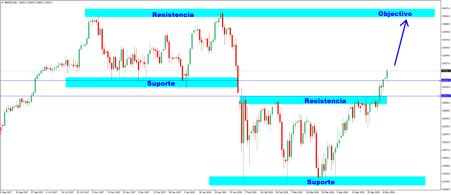 a quebrar finalmente as resistencias imediatas. caminho aberto para os 12950 até ao final do mês