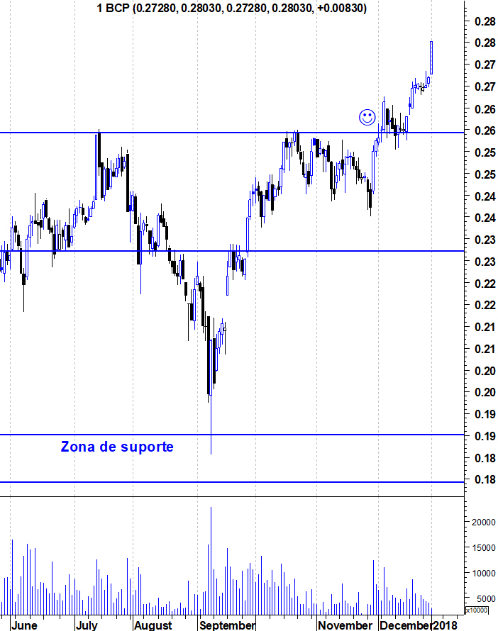 Se testar os 0,26 e tiver a reação que penso que terá é certo que este meu trade BCP ficará com 4 tranches. A próxima será quando passar os 0,30, que julgo acontecerá antes da apresentação de resultados anuais.
