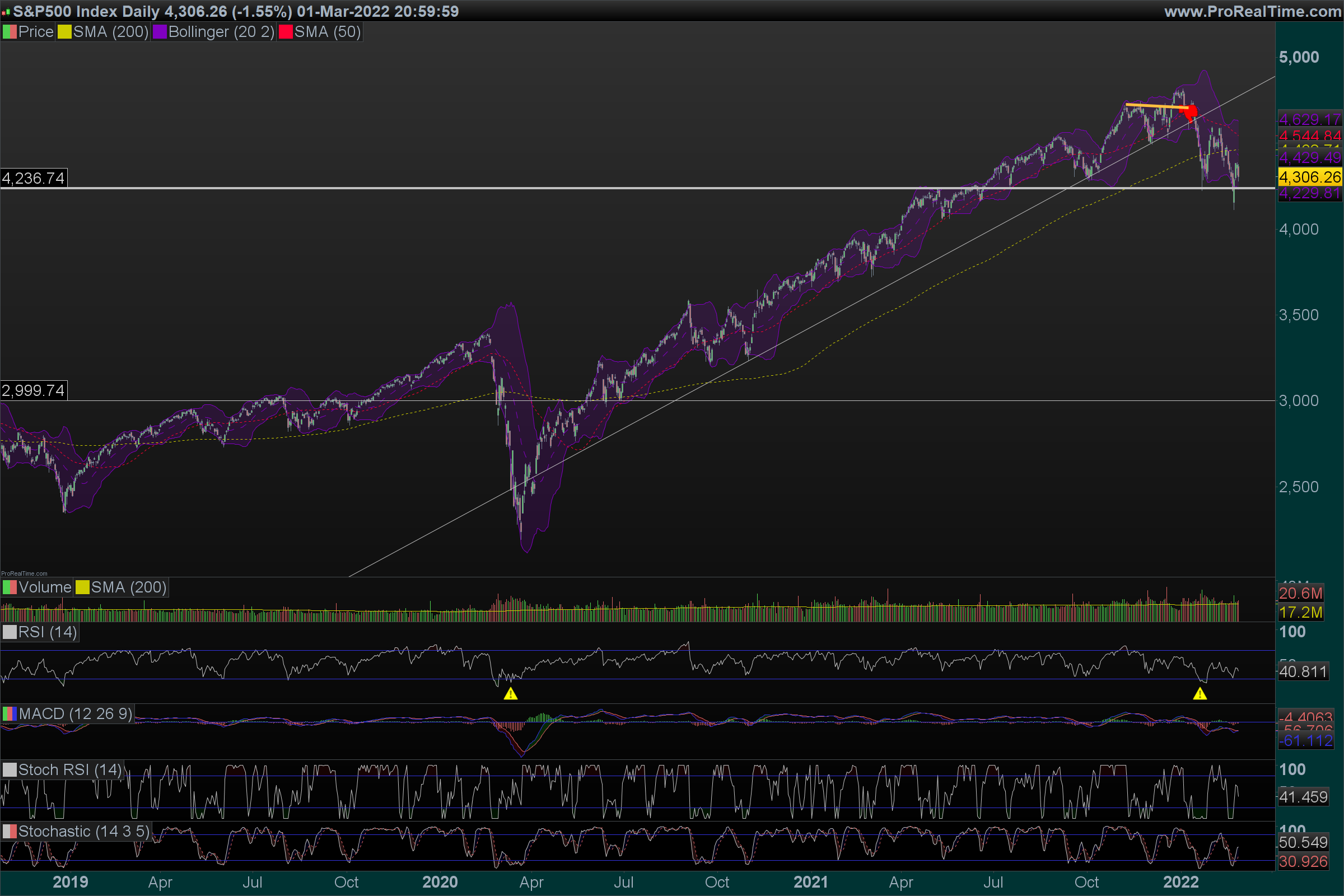 deixo ficar abaixo um gráfico do s&p 500, ainda sem o fecho de hoje, com a sua situação técnica actual.