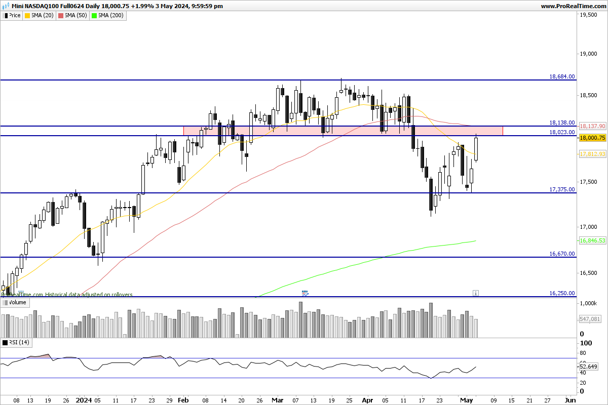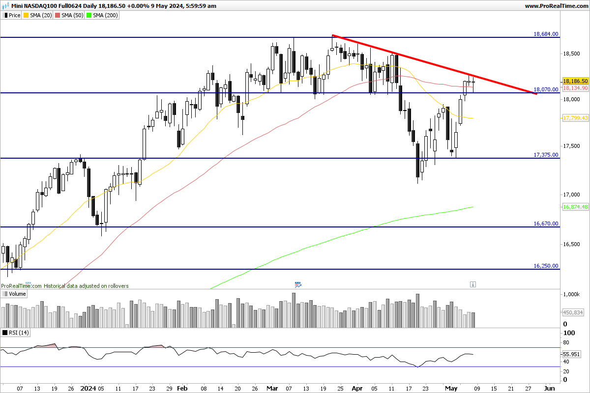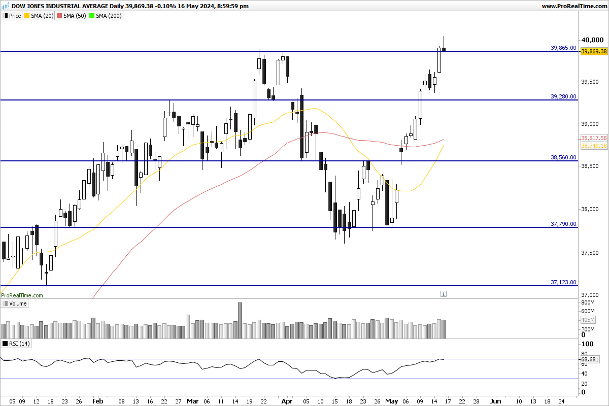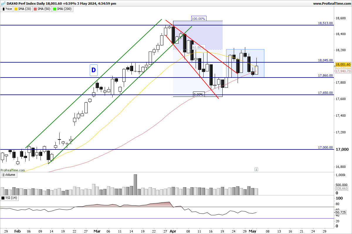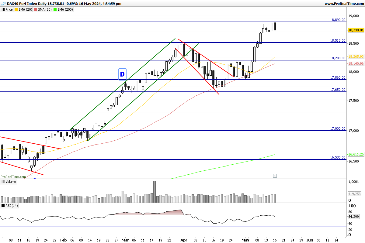 Com o otimismo em alta e com muita fruta para colher em dividendos a tónica tenderá para o positivo. Não me surpreenderia se o Dow Jones fosse a 5400 antes de corrigir. O Dax é outro índice feito de ações com dividendos generosos, os bancos vão querer recolhê-los e, portanto, até 31 de Maio o vento que empurra para norte deverá ser o modo como sopra. :mrgreen: